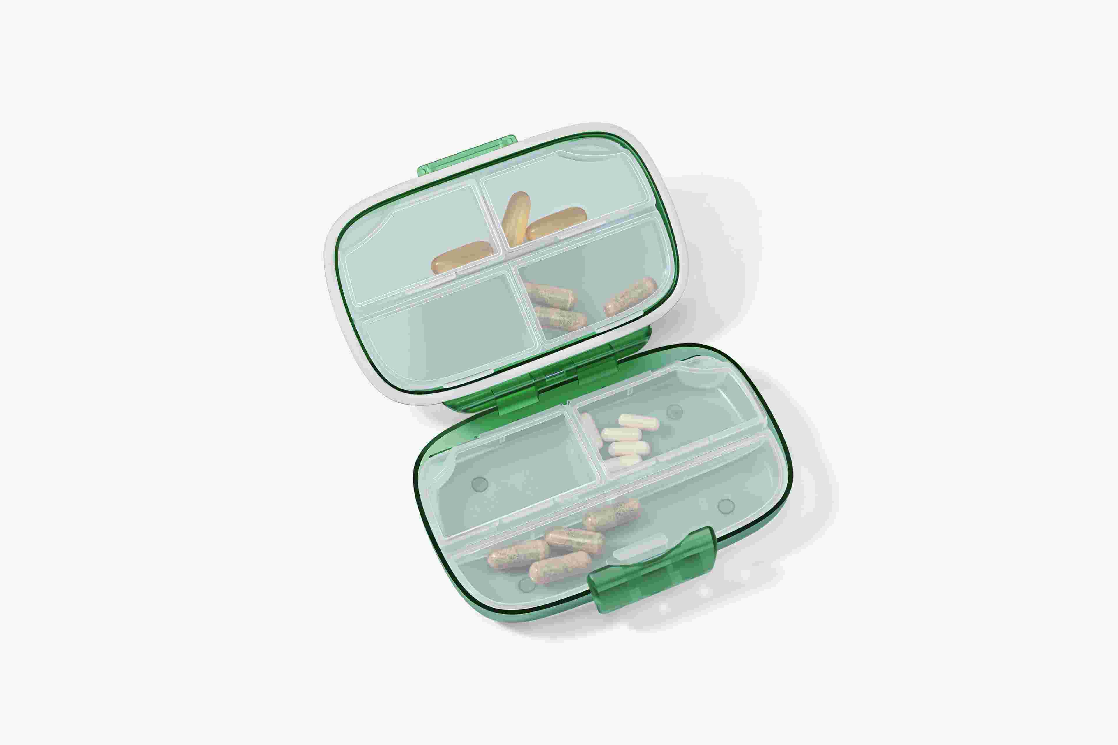 Stilīgā tablešu kastīte ir ērti ievietojama pat nelielā rokassomiņā, un vajadzīgie produkti vienmēr būs pa rokai.
